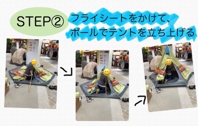 ②フライシートをかけて、ポールでテントを立ち上げる