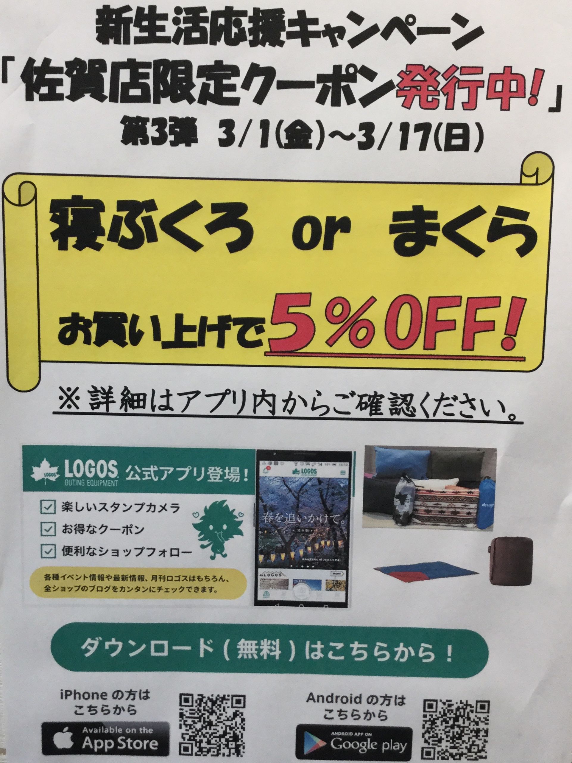 さて、現在公式アプリから発行中の佐賀店限定クーポン第三弾は
