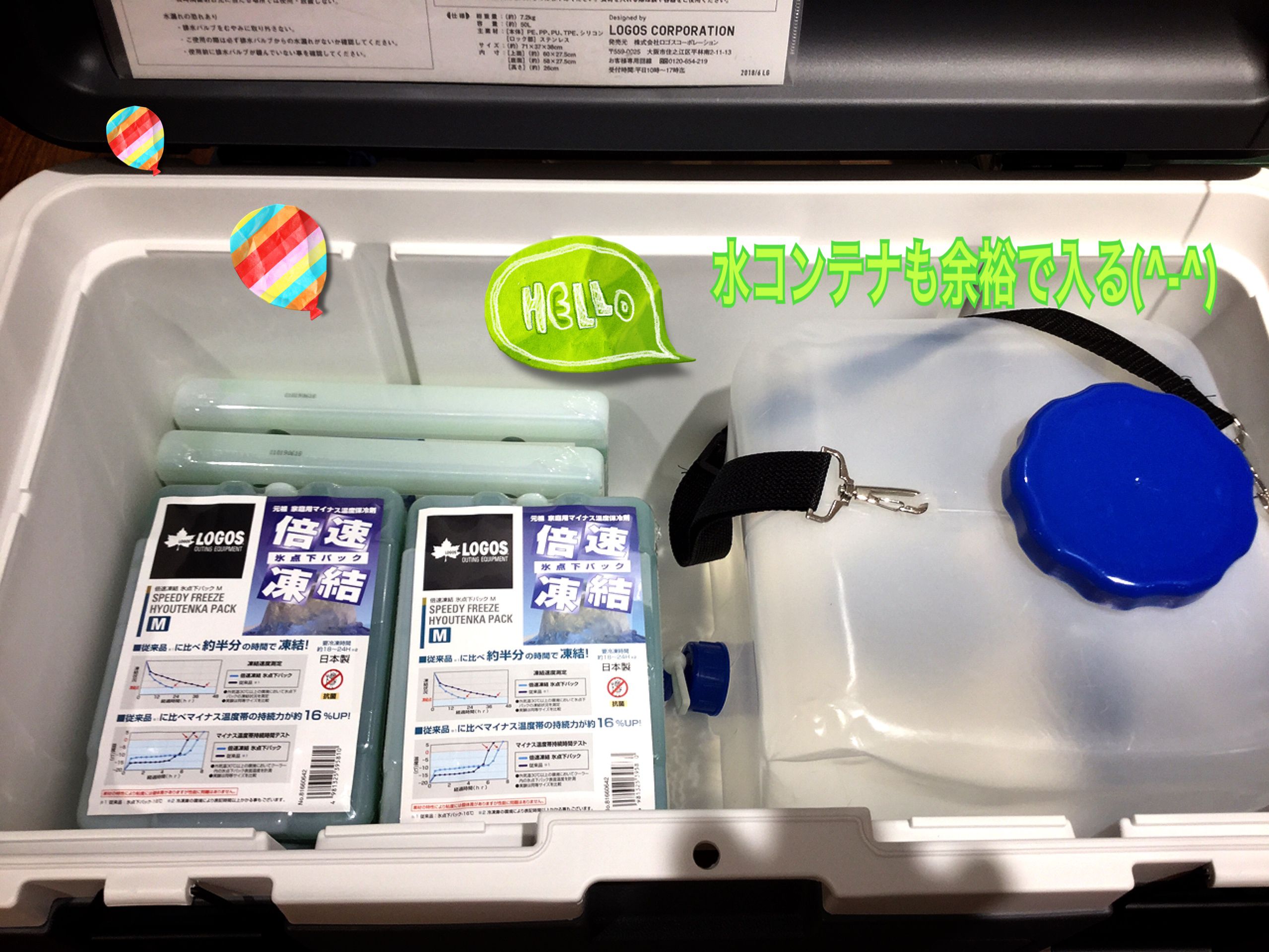 どのくらい入るかなーと水コンテナを入れてみましたが余裕でした^^