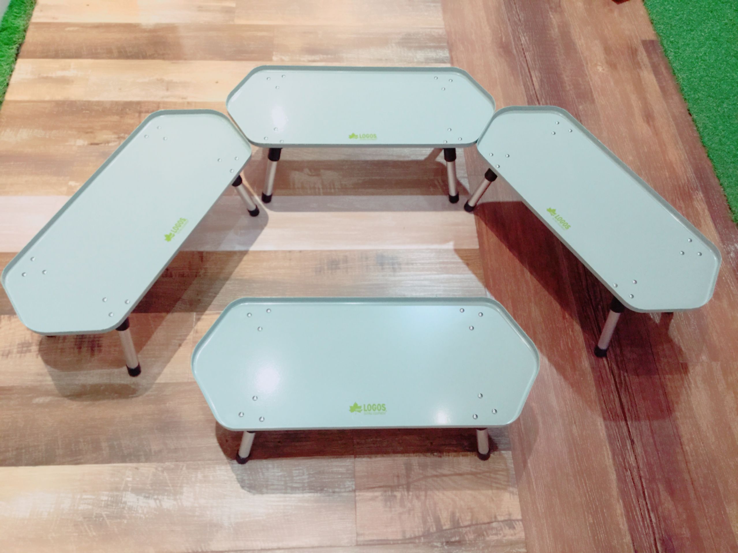 ラックテーブル×6個入りなのでソロなら1個だけ、3人なら三つだけ持って行けたり、3つはテーブル、残りは棚に、なんてことがやりたい放題♪