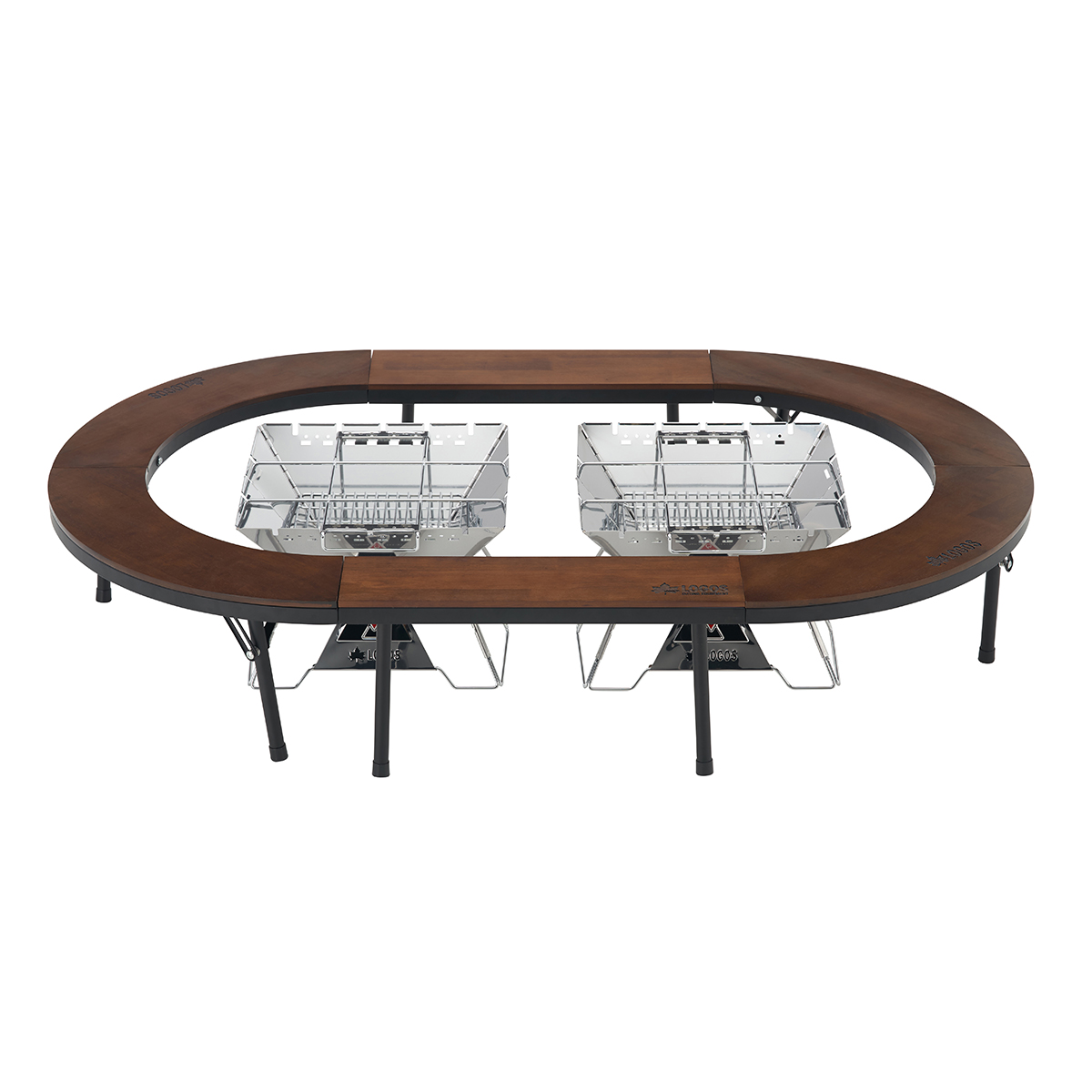 別売りの「囲炉裏テーブル」の中央間口に本品2台がぴったり収まるサイズ。