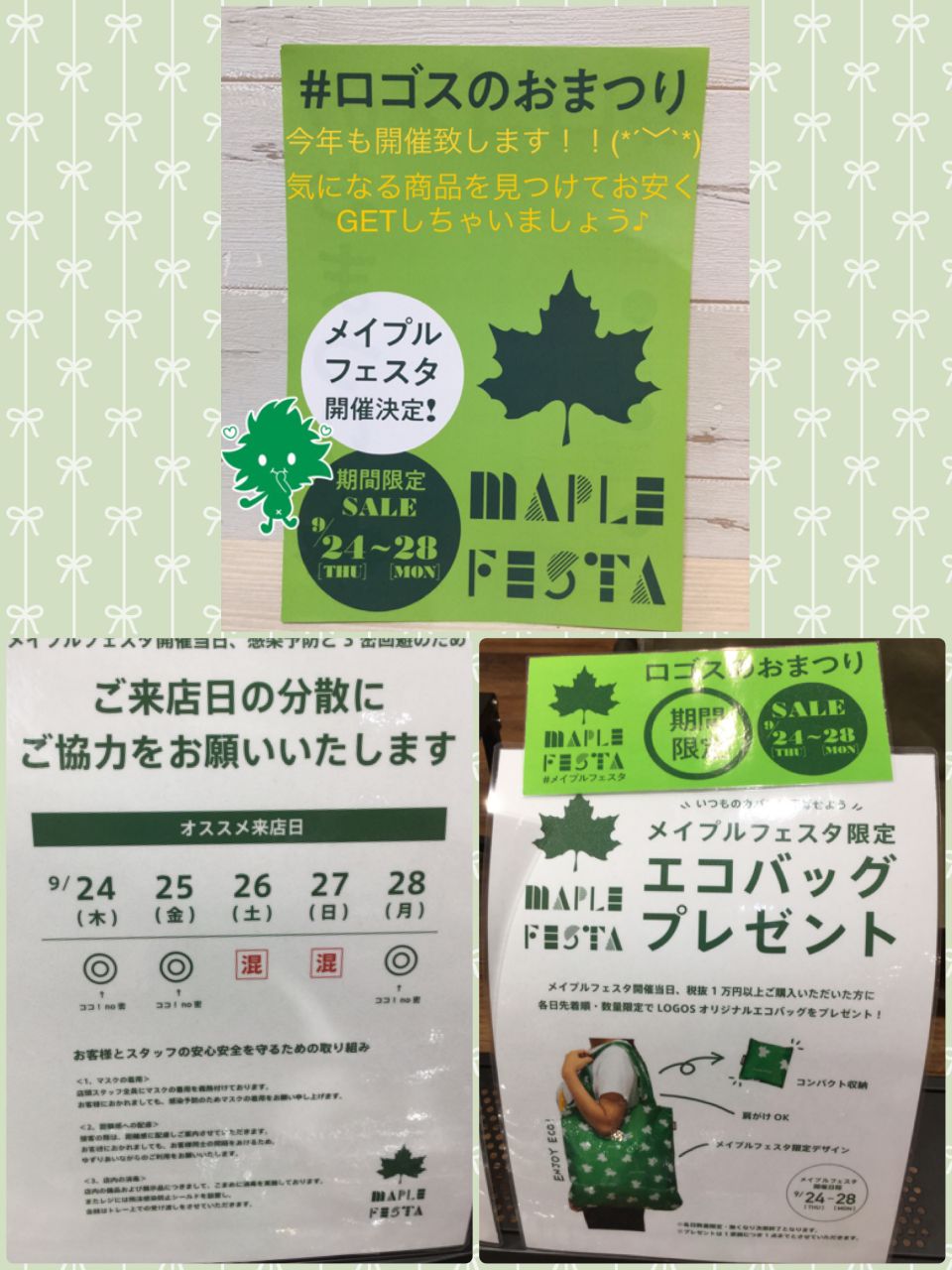 今回は、各日、先着順でメイプルフェスタデザインのエコバックを対象アイテム一万円以上購入の方にプレゼント。