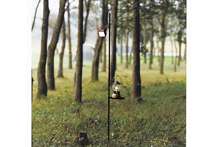 フックにランタンをかけたり、小物をラックに置いてみたり、