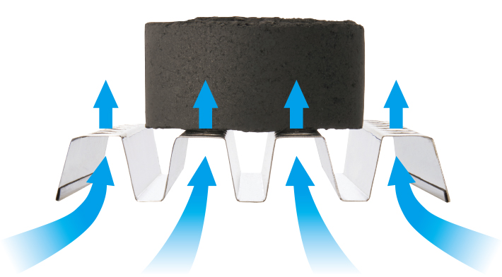 これにより、炭の下に空気の通り道を確保し、グリルの火力がグンとアップ!
