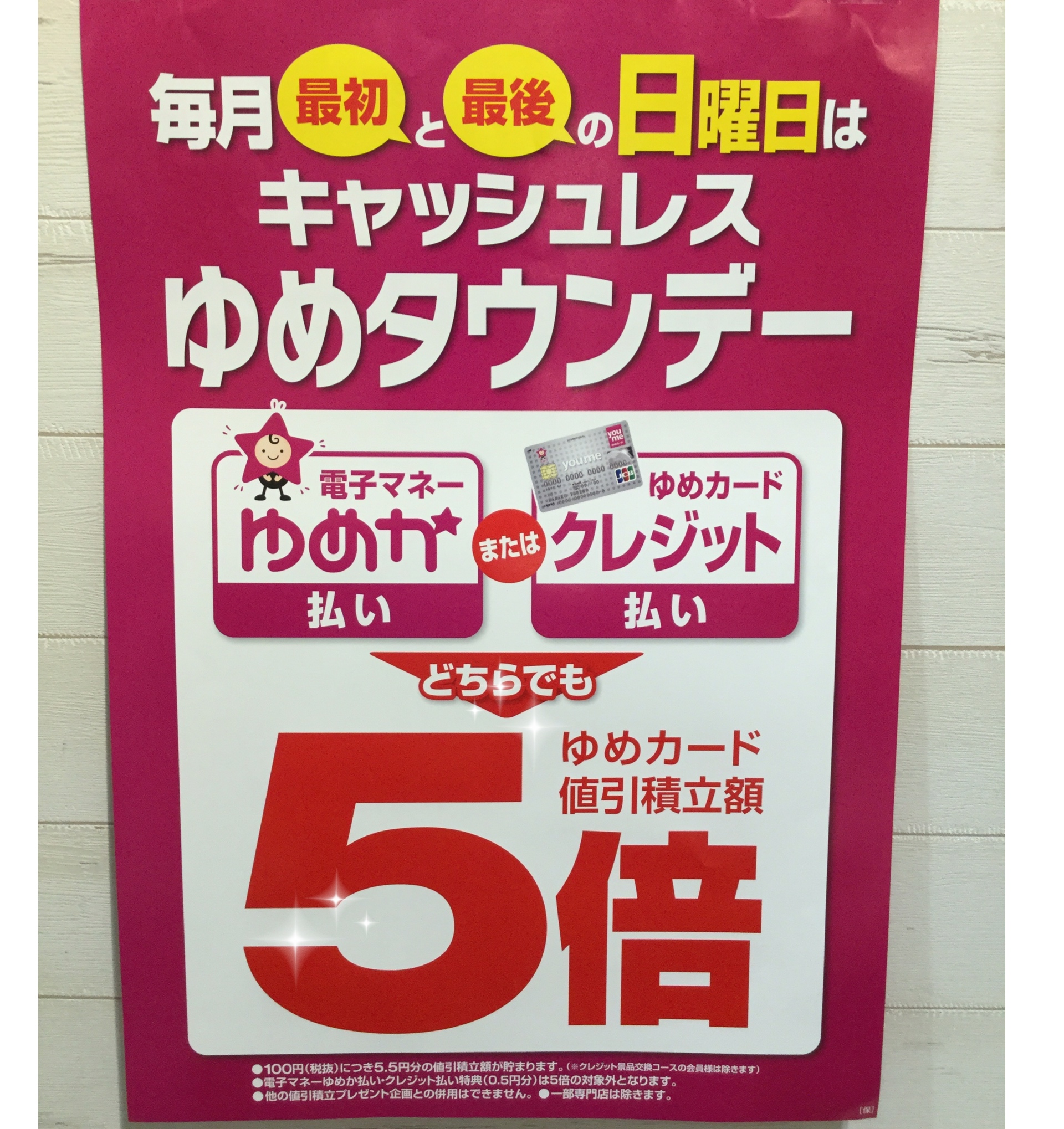 ゆめかクレジット払いor電子マネーゆめかでのお支払いでポイント5倍と