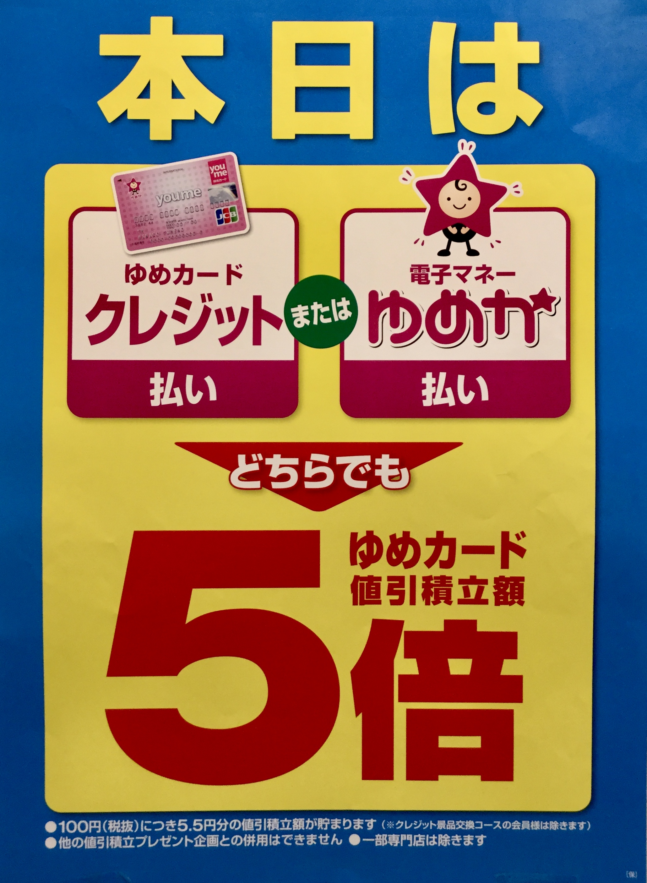 ゆめかクレジットや電子マネーゆめかでのお支払いでポイントが5倍です!