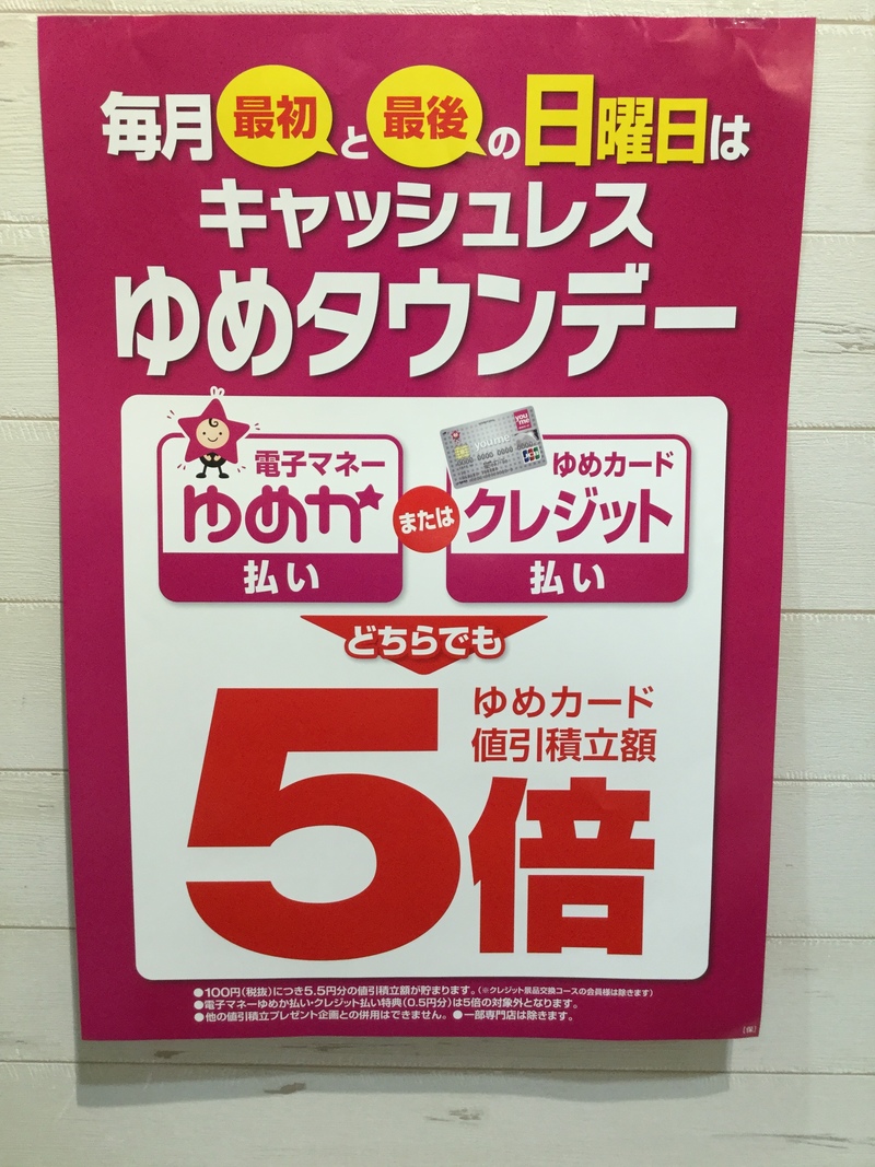 また、本日はキャッシュレスデーにつき、ゆめかまたはゆめカードクレジットでのお支払いで値引積立額が5倍となっております!