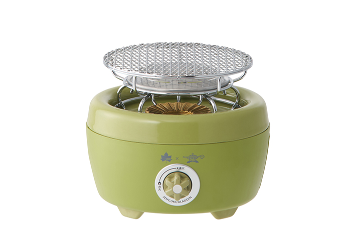 風が吹いても火が消えにくい形状となっており、付属のグリルキットを使えば肉や魚を焼く事が出来ます。