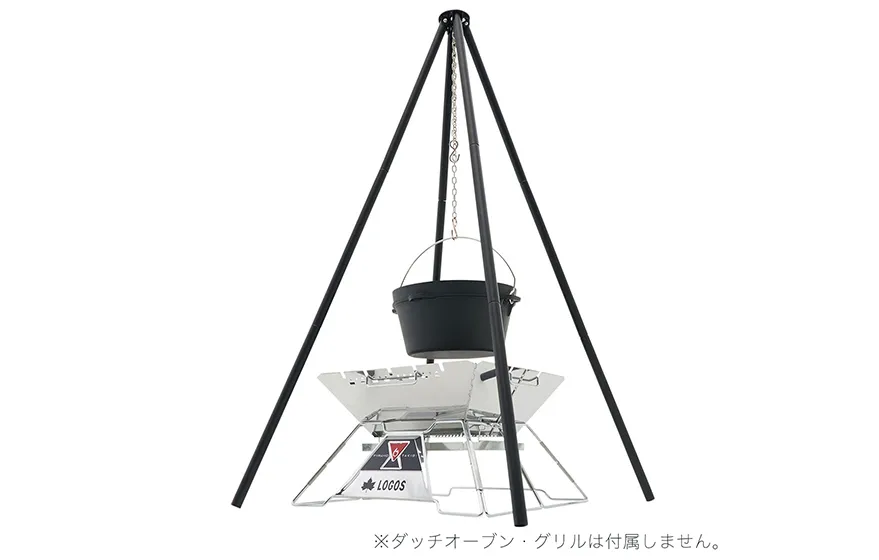 たき火の空間に馴染むシックな色合い。料理スタイルが広がる、4本脚の吊り下げ料理スタンド。
