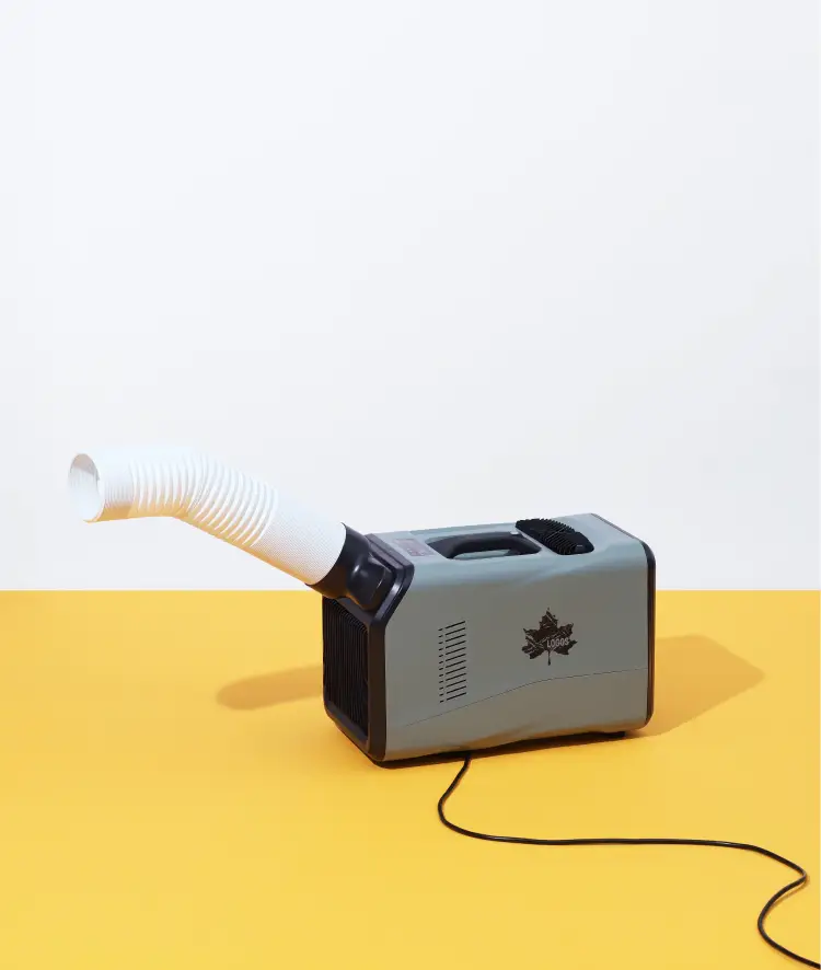 エアコン対応のLOGOS製テントなら、専用ダクト差し込み口付きで、効率的にクールに。