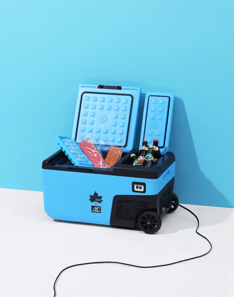 コンセントがあれば、どこでも使えるLOGOSのポータブル冷凍冷蔵庫。設定範囲が、MAX-30℃〜20℃までと幅広く、夏でもアイスクリームが溶けず、おいしく食べられます。500mlペットボトルが18本入るメイン庫内のほか、小さめの食材を冷やせるサブ庫内も付属。持ち手とホイール付きなので持ち運びがラクです。